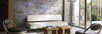 Эти свойства позволяют использовать минерал для создания входных групп, напольных и настенных покрытий, лестниц, ванных и кухонных столешниц.  Камень дополняет стиль, привносит изюминку и неповторимость — достаточно добавить нескольких декоративных элементов, чтобы разнообразить интерьер.