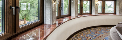 Гранит, мрамор, песчаник используют и для внешней отделки. Материал позволяет воплощать в реальность даже самые необычные идеи. Фактурность и многогранность минерала добавляет зданиям благородства, презентабельности и стиля. Он также обладает практичными свойствами: не поддается перепадам температуры, отличается влагостойкостью, его легко чистить.