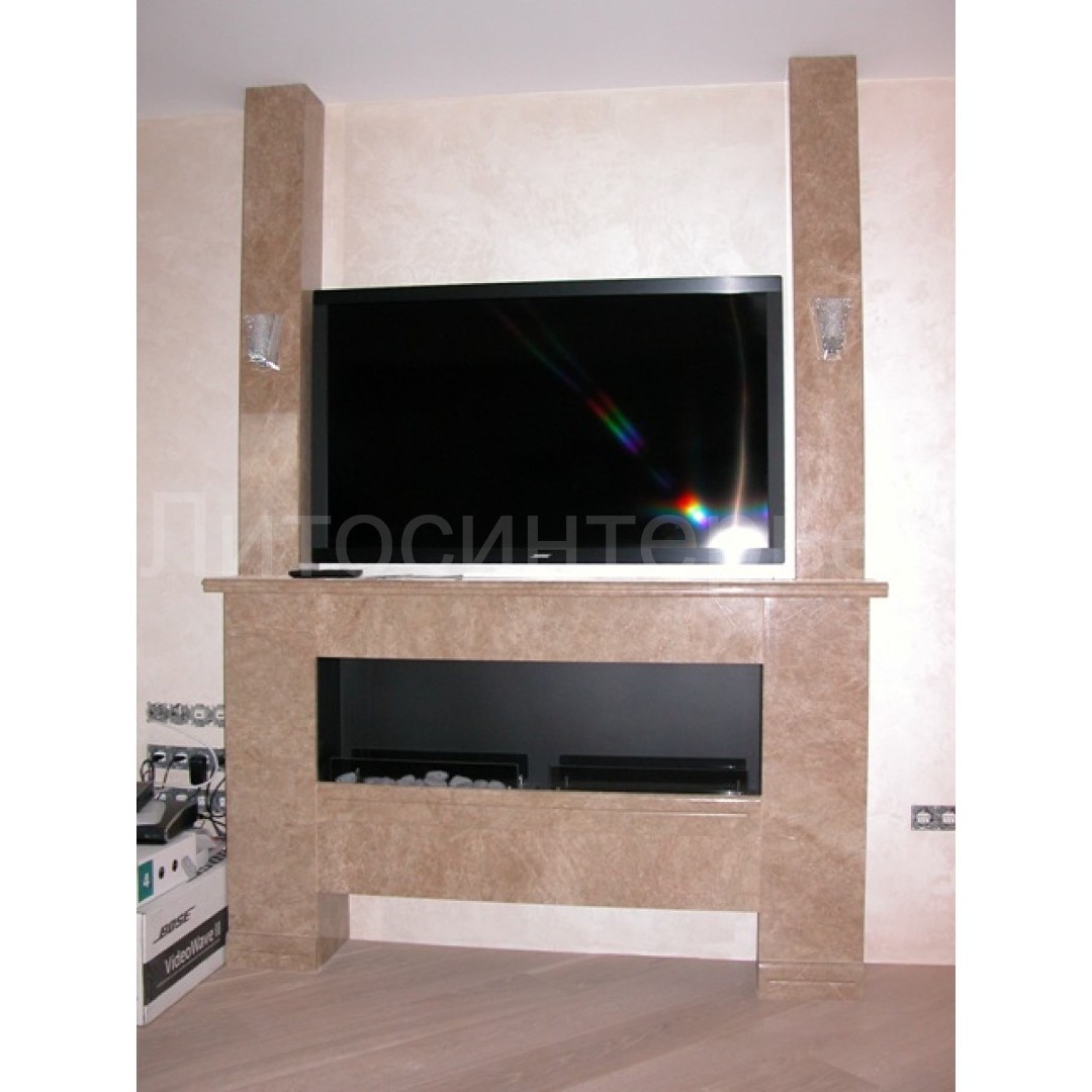 Портал для камина и телевизора (монитора) из мрамора.