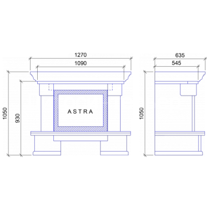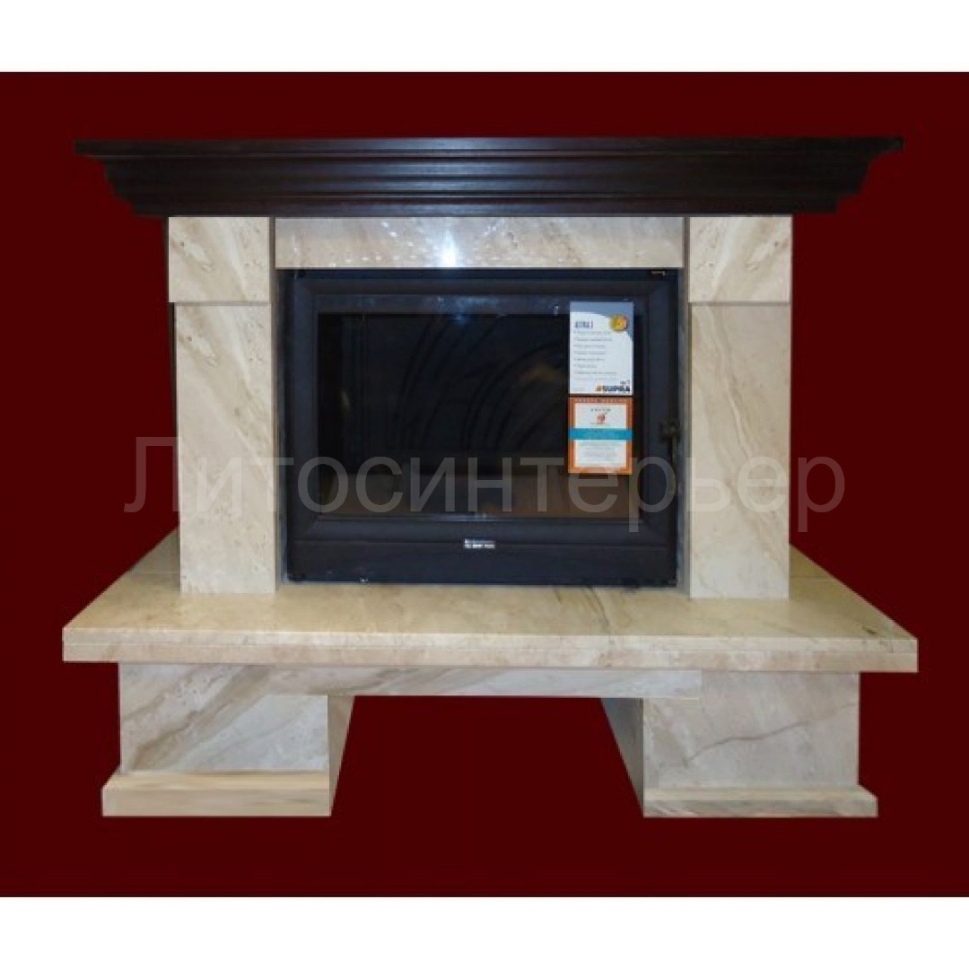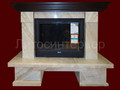 Представлен чертеж-проект камина, а также пример исполнения данного проекта - портал из мрамора Daino и дровяная топка.