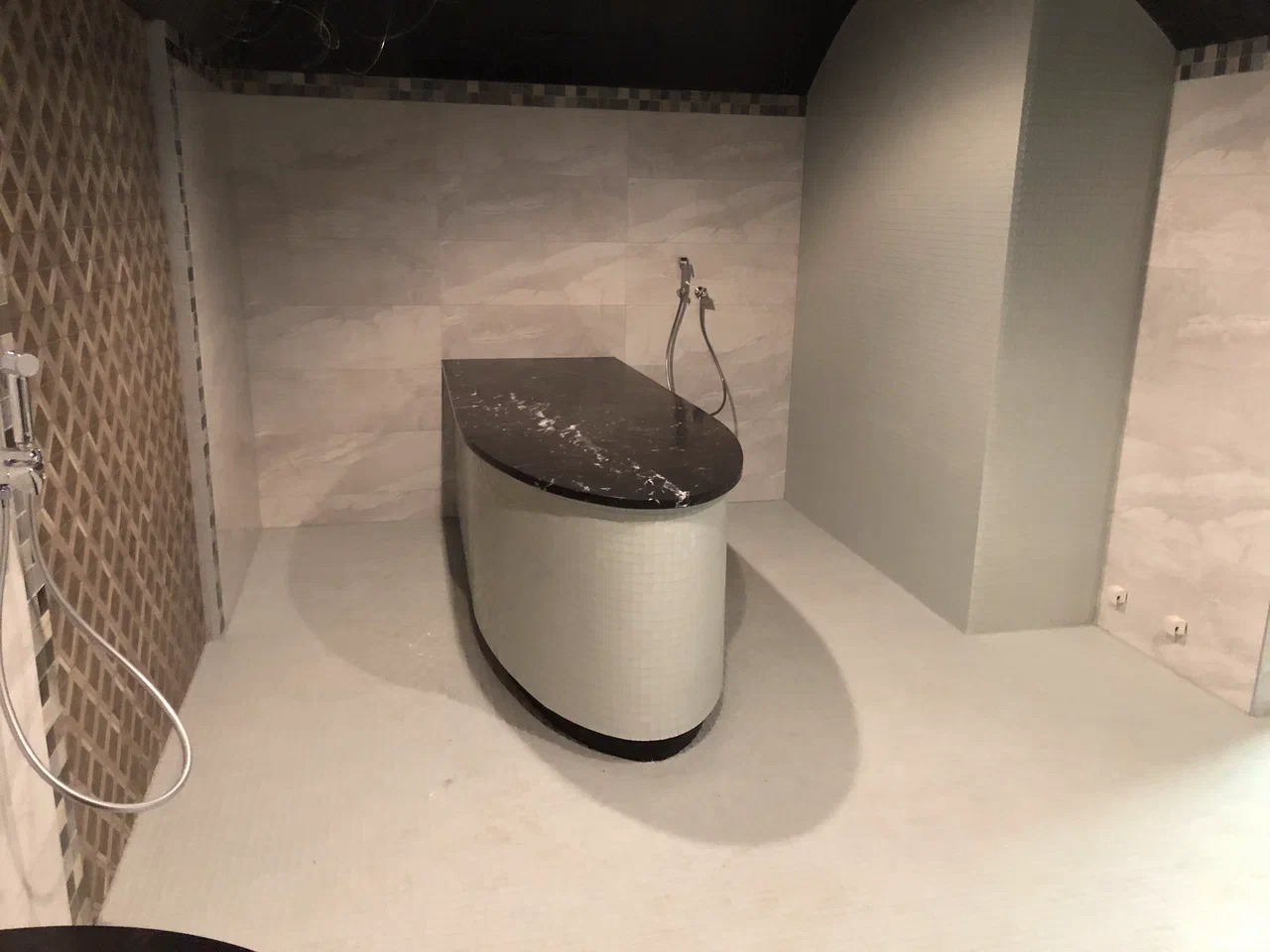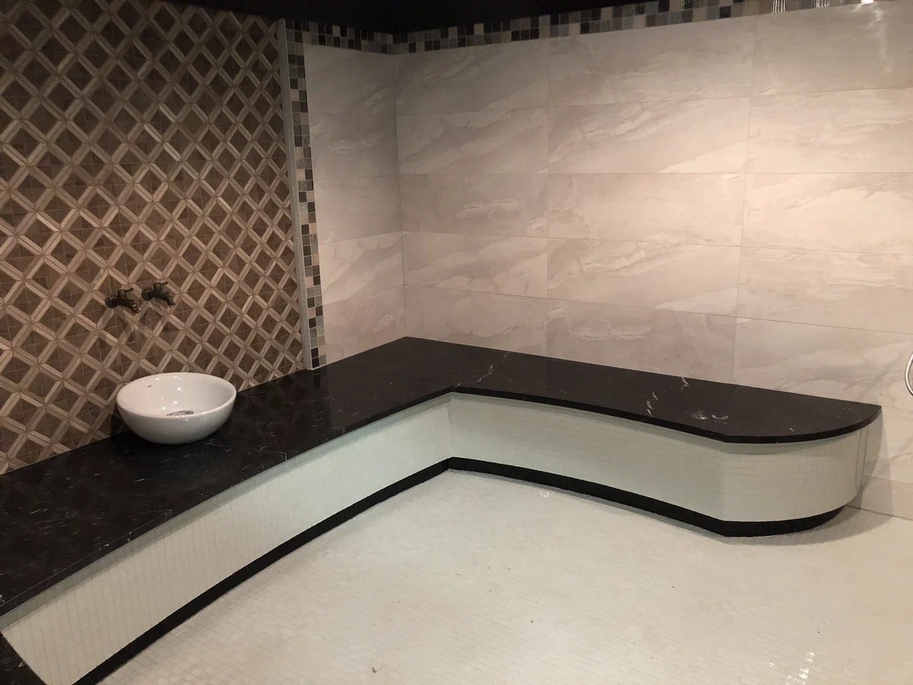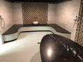 Полка и стол в турецкой бане из мрамора Nero Marquina
