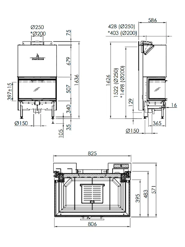 | Диаметр дымохода | 250 мм |