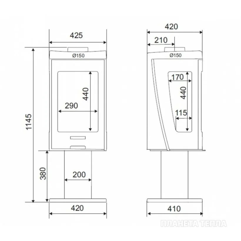 Трехсторонняя чугунная отопительная печь на ножке.