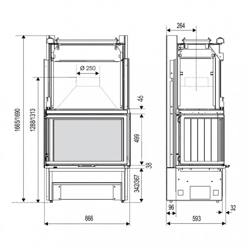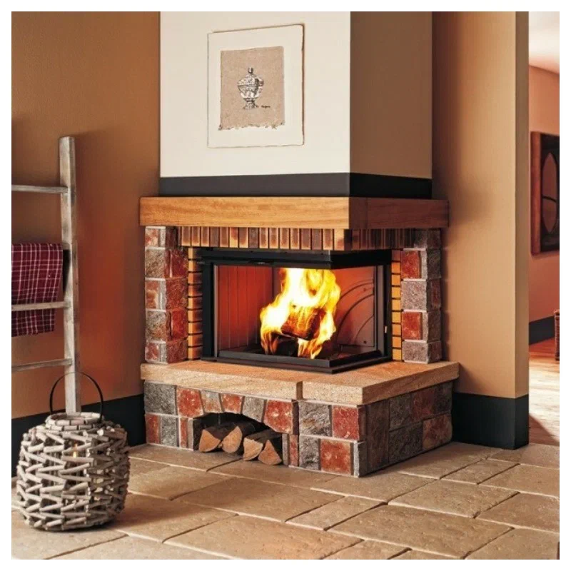 - Чугунная топка, двухстороннее стекло (левая + центральная стороны);