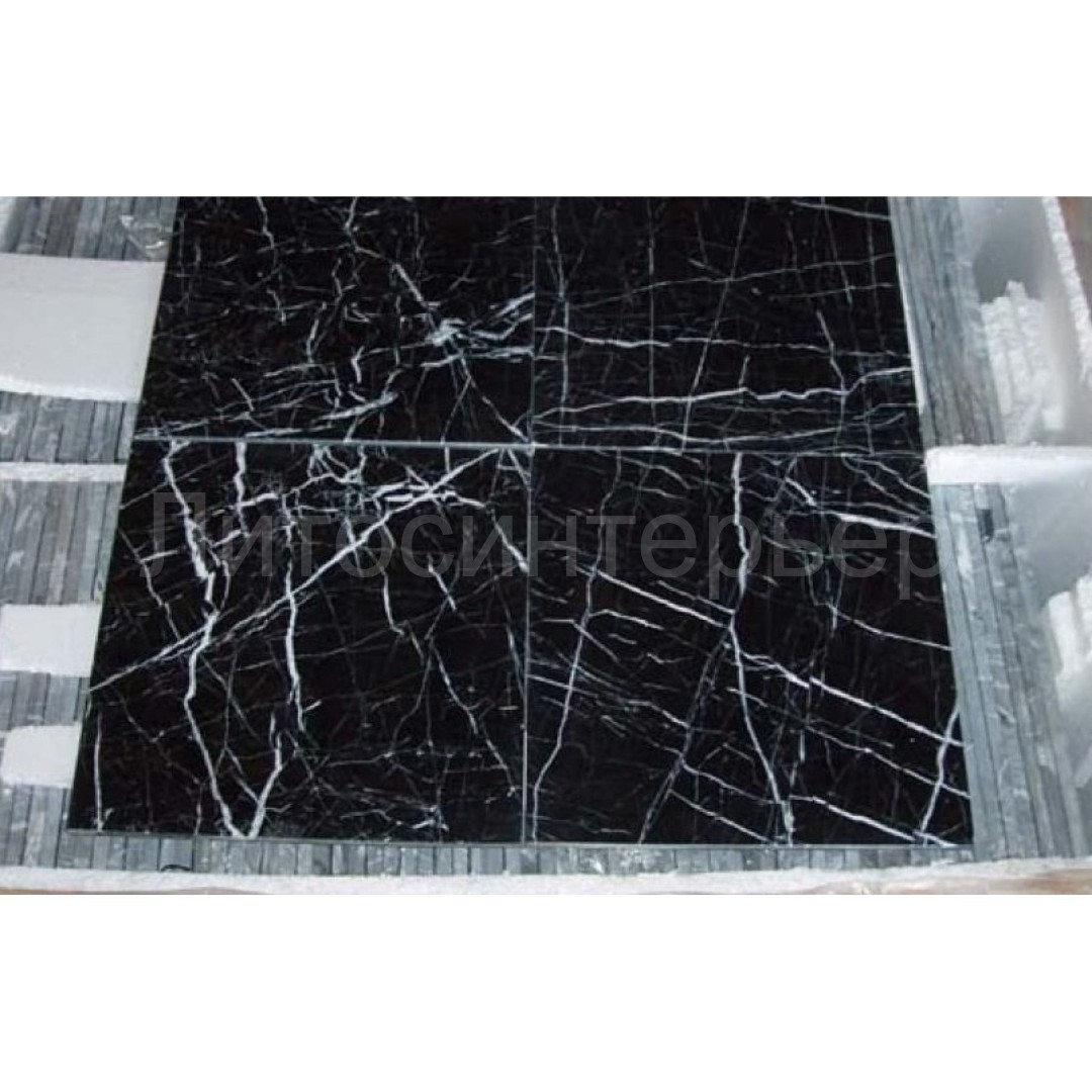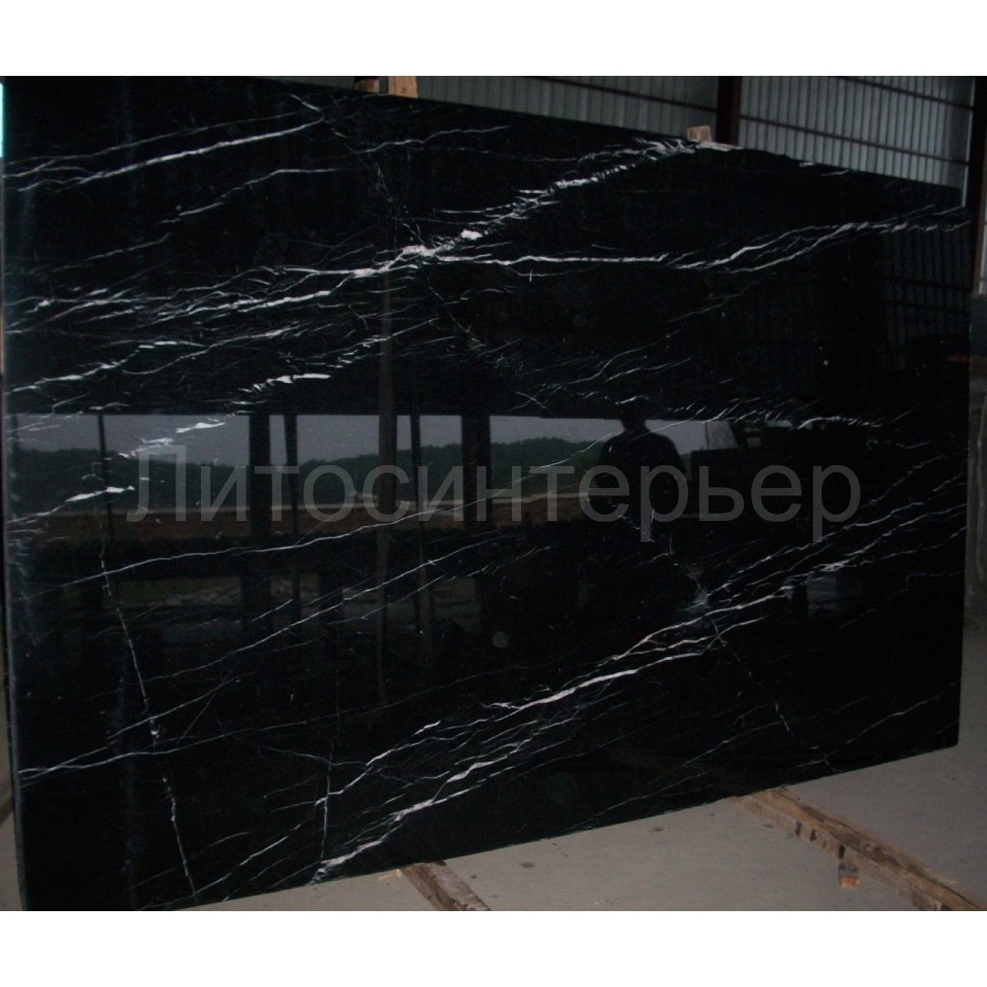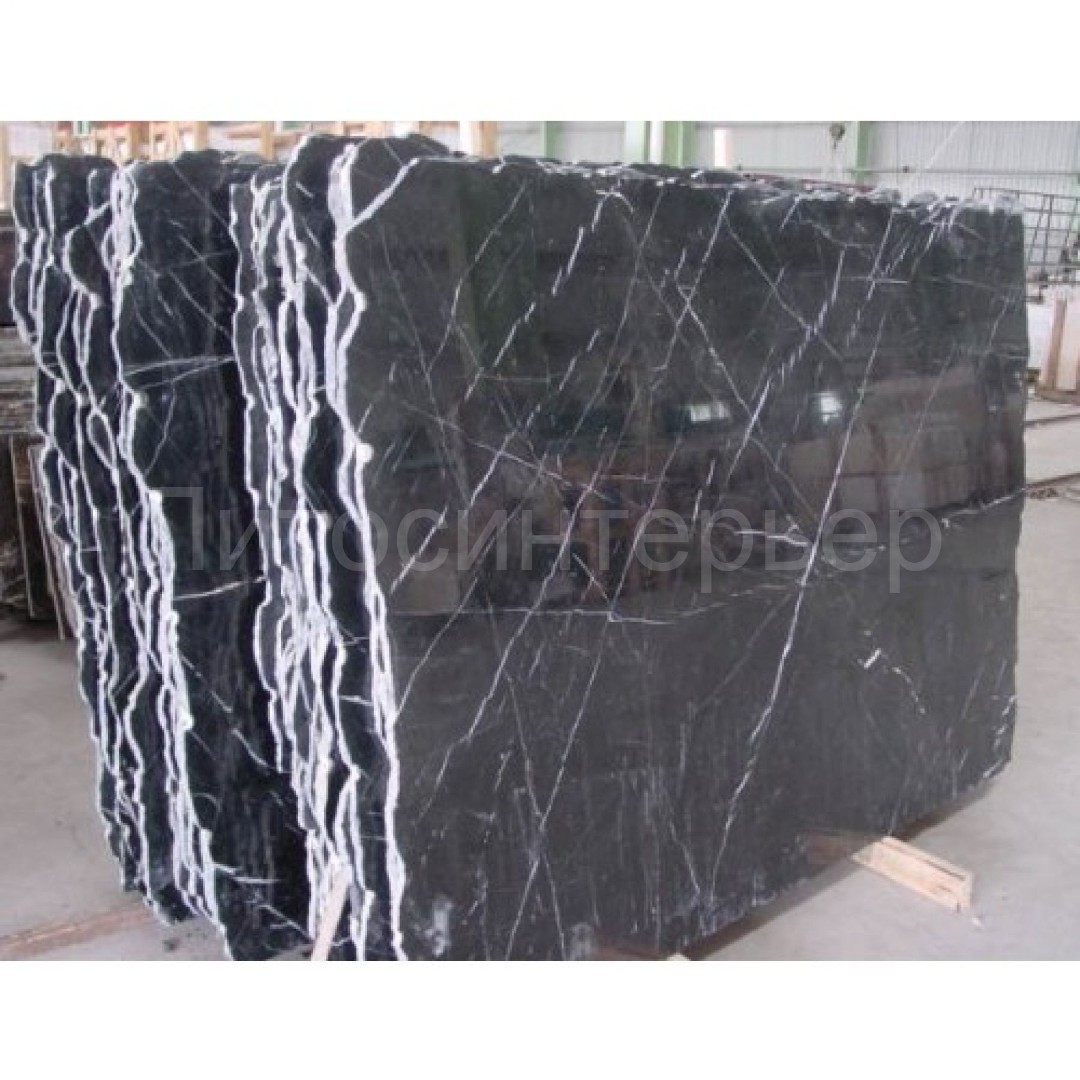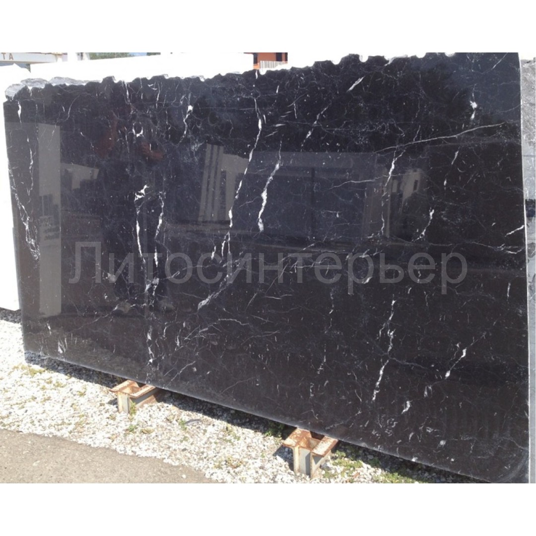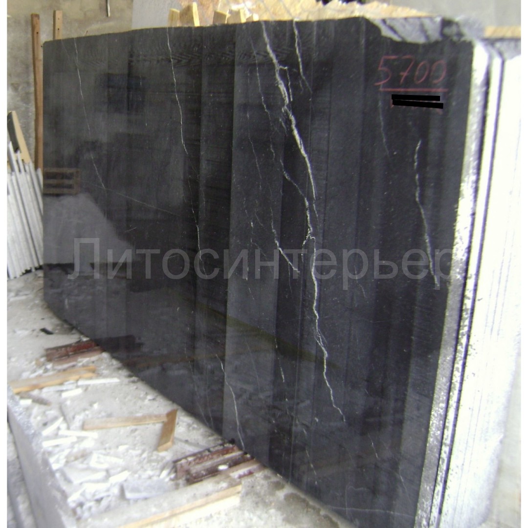 Nero Marquina - черный мрамор с белыми прожилками, месторождение - Испания.