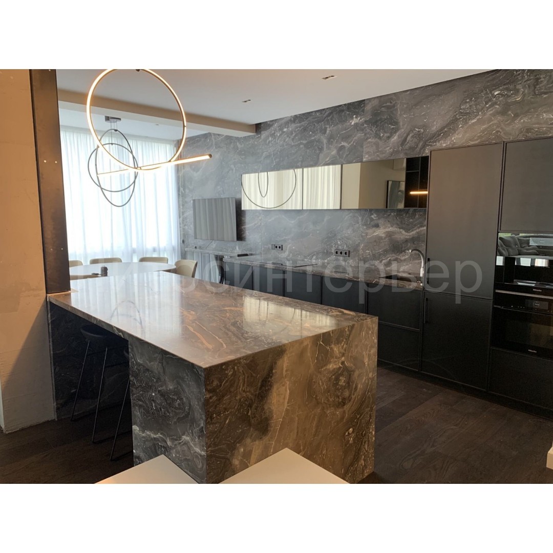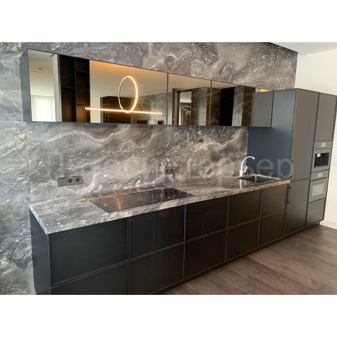 Orobico (Arabescato Orobico; Grigio Orobico) - темно-серый мрамор со светло-серыми и бежевыми прожилками, месторождение - Италия.
