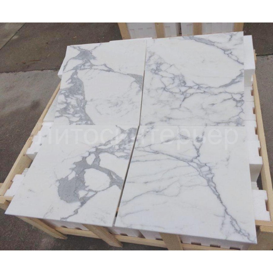 - белый мрамор с темно-серыми прожилками, месторождение - Италия.
